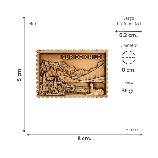 Imán Decorativo Color Cobre Souvenir Sur de Chile