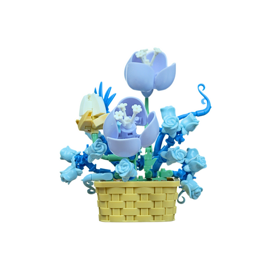 Juguete Bloques De Construcción Flores En Cesta Azul