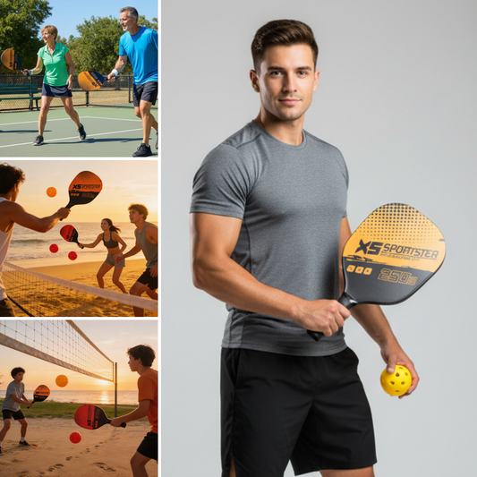 Set de Pickleball Combo 2 Paletas 4 Pelotas Playa Outdoor Amarillo