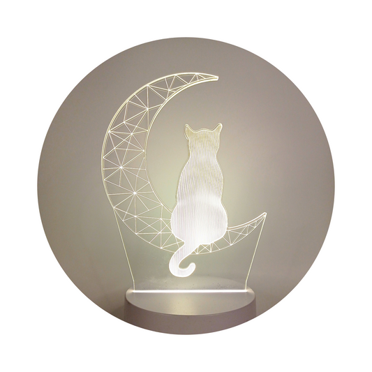 Lámpara LED De Mesa 3D USB Luz Gato y Luna