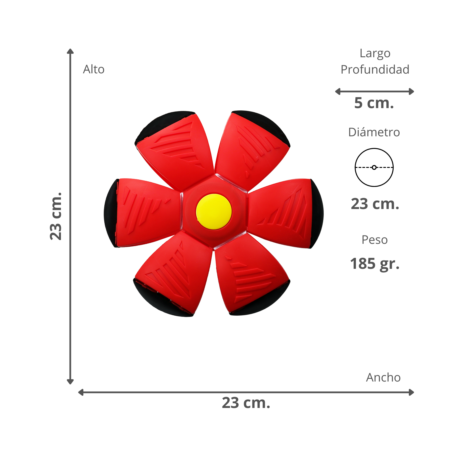 - Tamaño plegado: 23 x 23 x 5 cm.