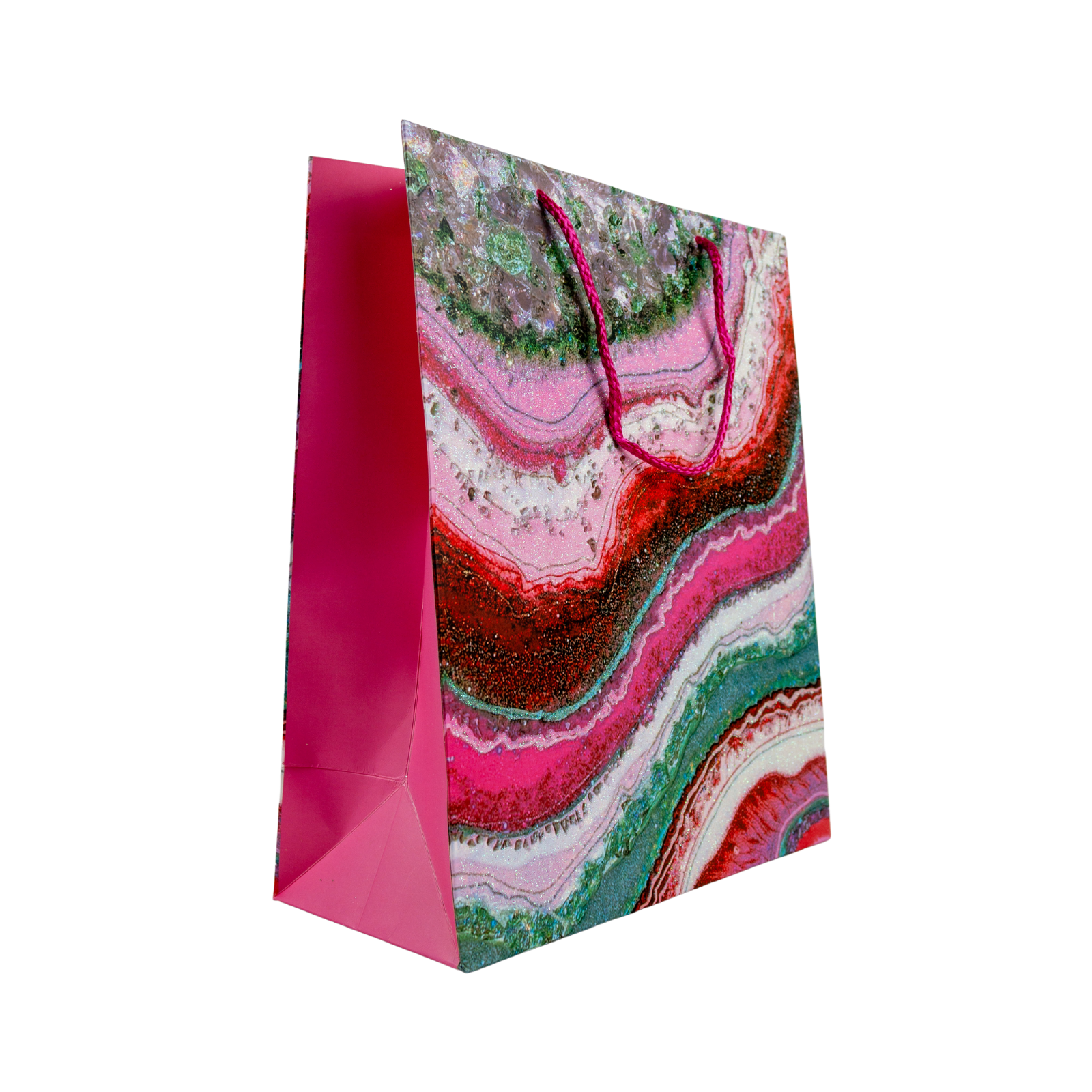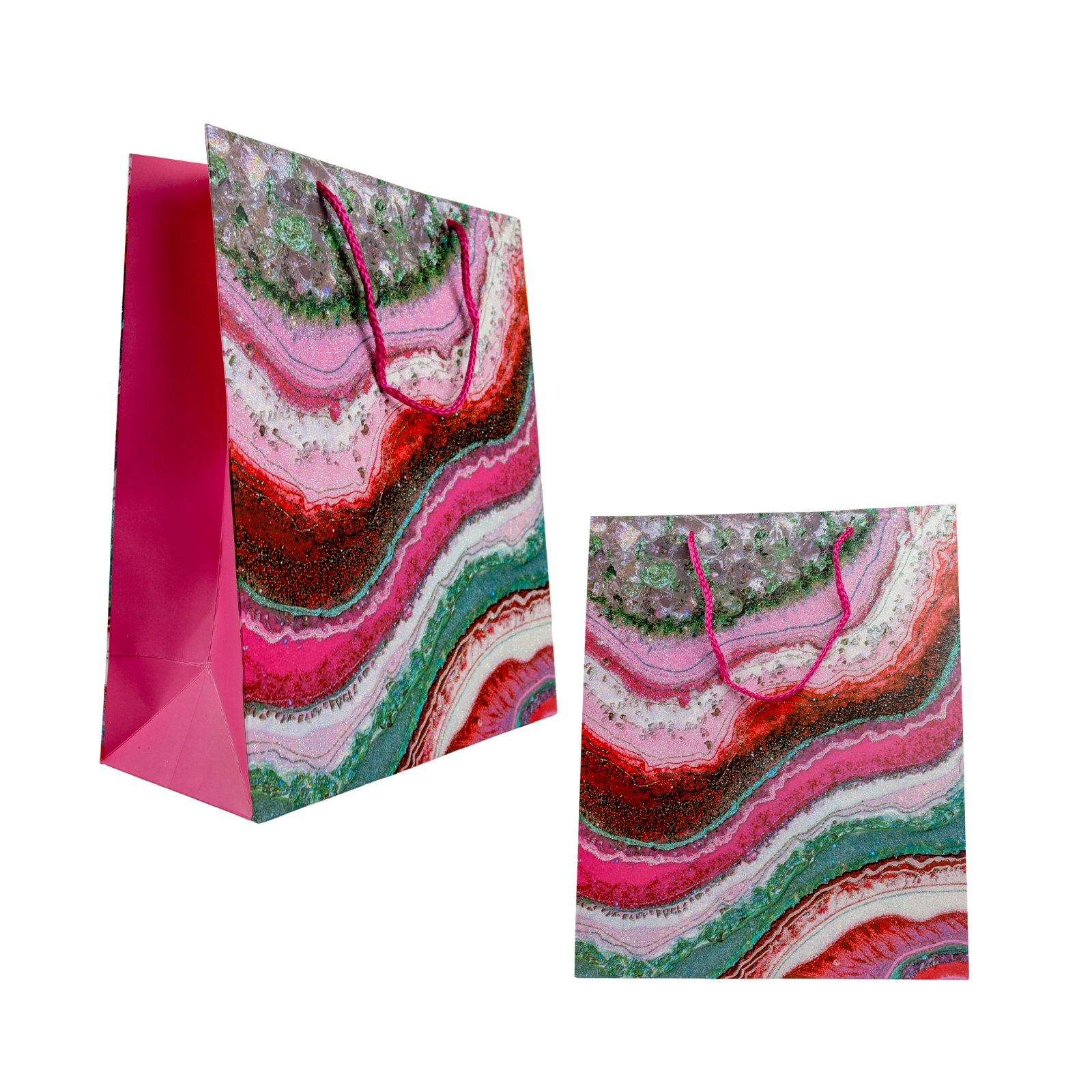¡Celebra a tus seres queridos con estilo y conciencia ecológica! Con nuestras bolsas con encantadores diseños, no solo son lindas, sino también amigables con el planeta. Están hechas de material reciclable, con un hermoso pabilo de fibra y elegantes impresiones brillantes que añaden un toque de sofisticación a tus regalos.