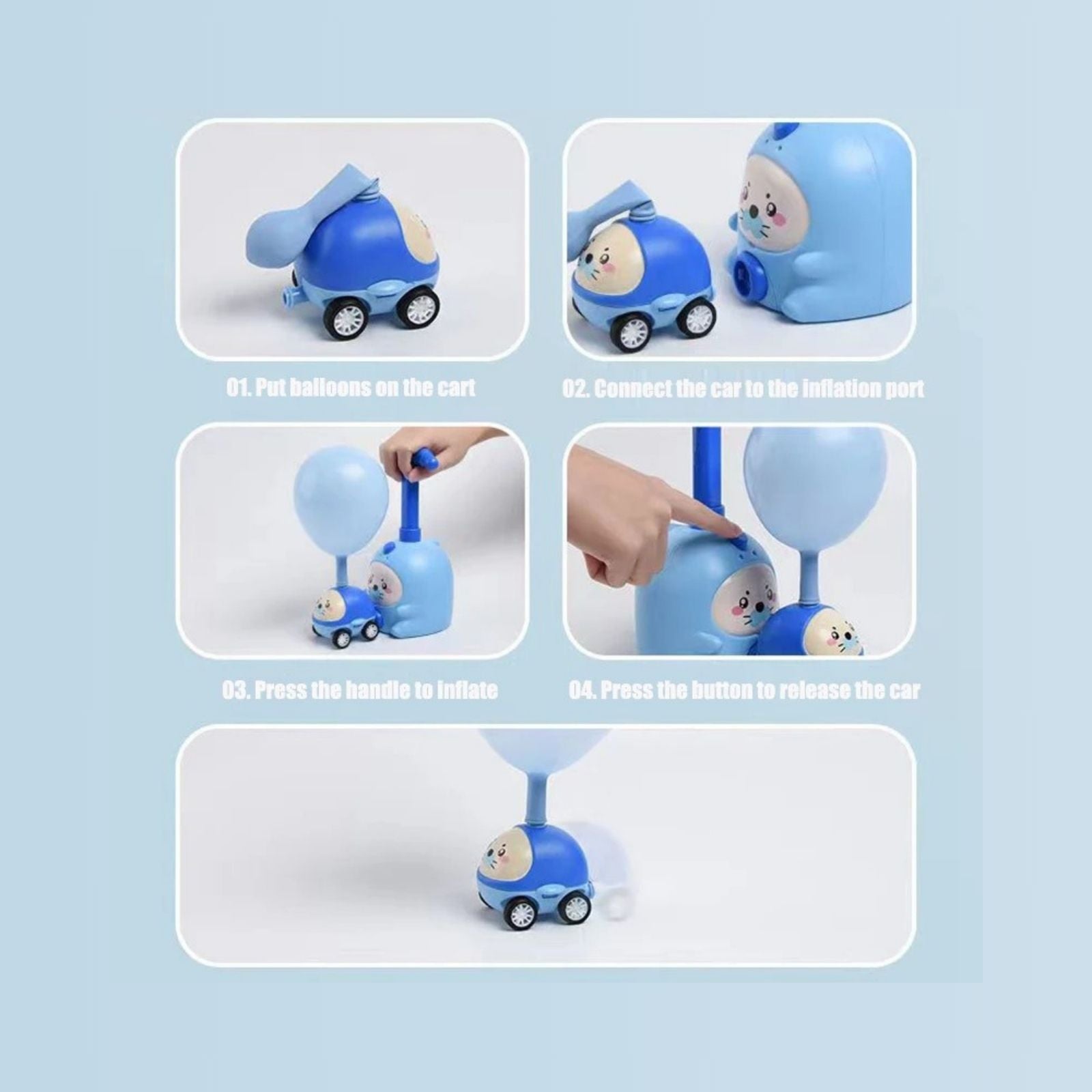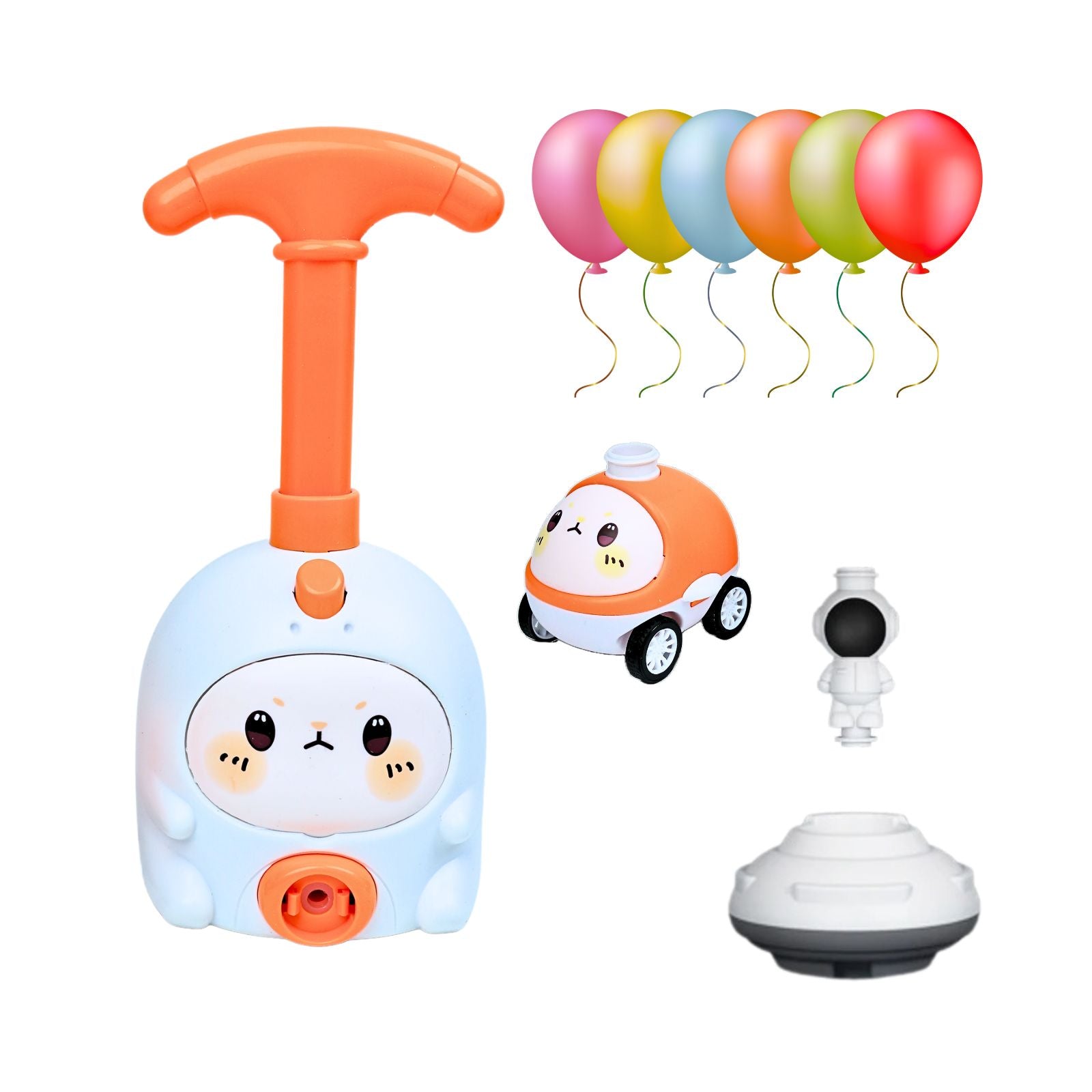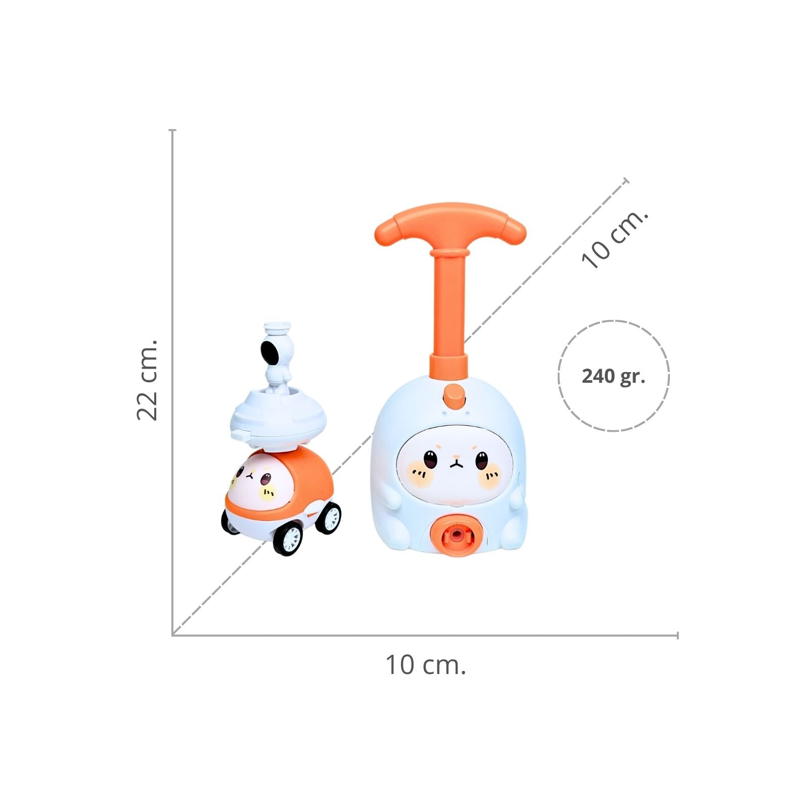 Este juguete es perfecto para estimular la creatividad y el juego activo en los más pequeños. Funciona con un bombín que infla un globo conectado a un carrito o un astronauta volador. Al presionar el bombín, el aire impulsa el globo y hace que el vehículo o el astronauta se desplace rápidamente, imitando el efecto de una turbina.