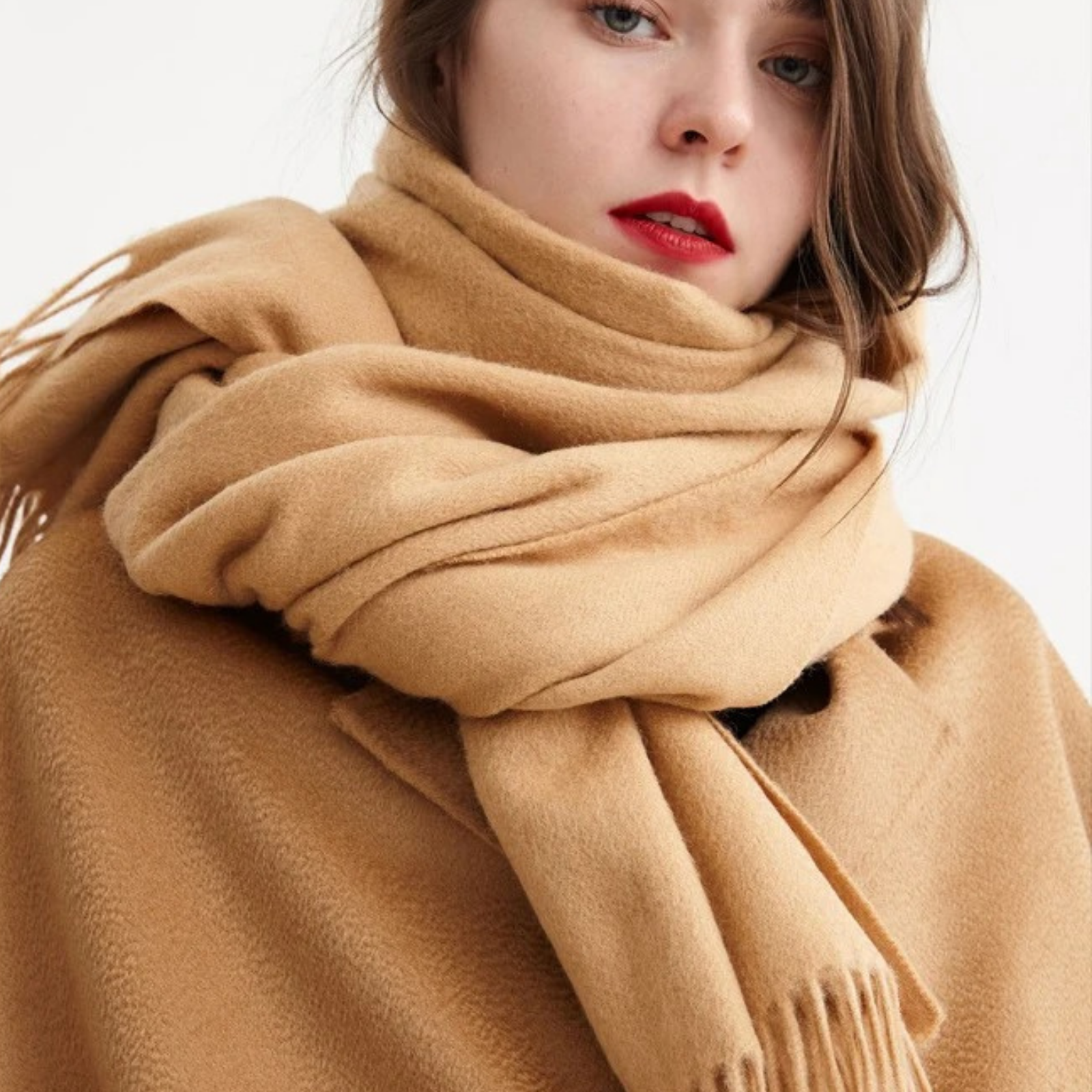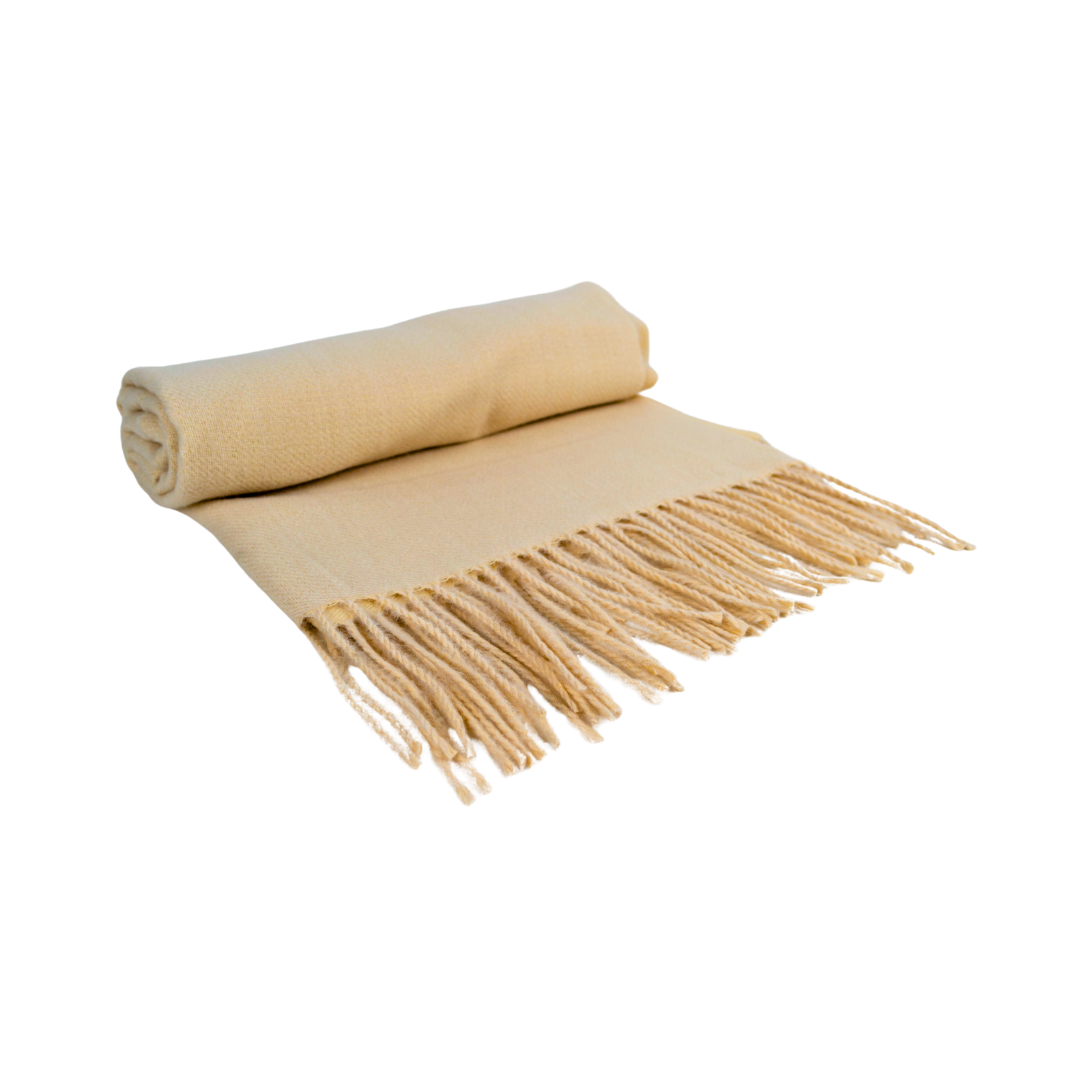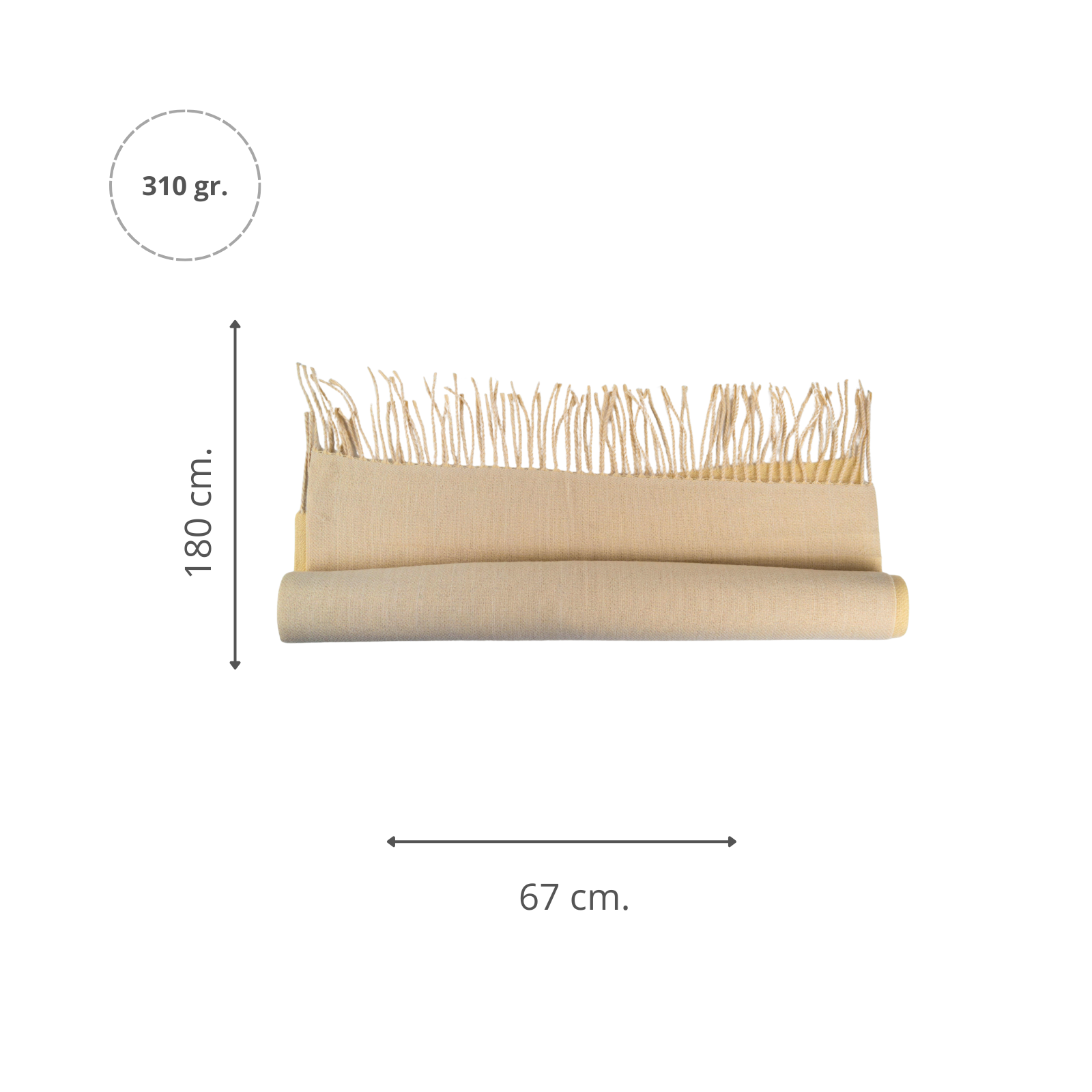 Luce con estilo y mantente abrigada en cualquier ocasión con esta bufanda de cachemira extra grande. Su diseño versátil te permite usarla como echarpe, chal o accesorio de moda para elevar cualquier look. Confeccionada en lana 100% natural, combina suavidad, abrigo y sofisticación. El tono beige neutro la convierte en el complemento perfecto para todo tipo de outfits.