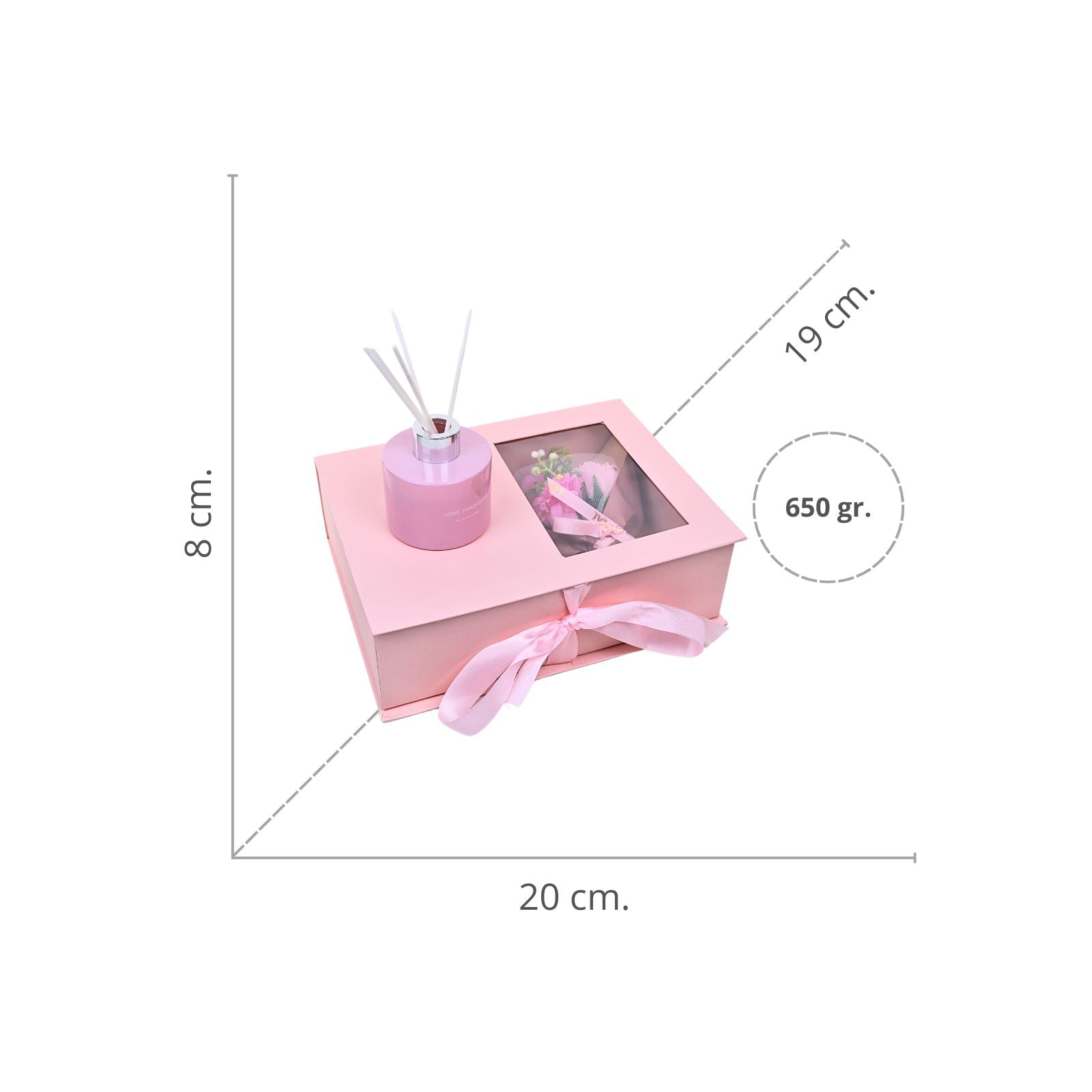Sorprende a esa persona especial con un detalle elegante y significativo. Esta caja de regalo incluye una hermosa rosa eterna y un sofisticado difusor de aroma con varillas, perfecto para crear un ambiente acogedor y romántico. La caja puede conservarse como recuerdo, mientras que la rosa añade un toque decorativo atemporal.