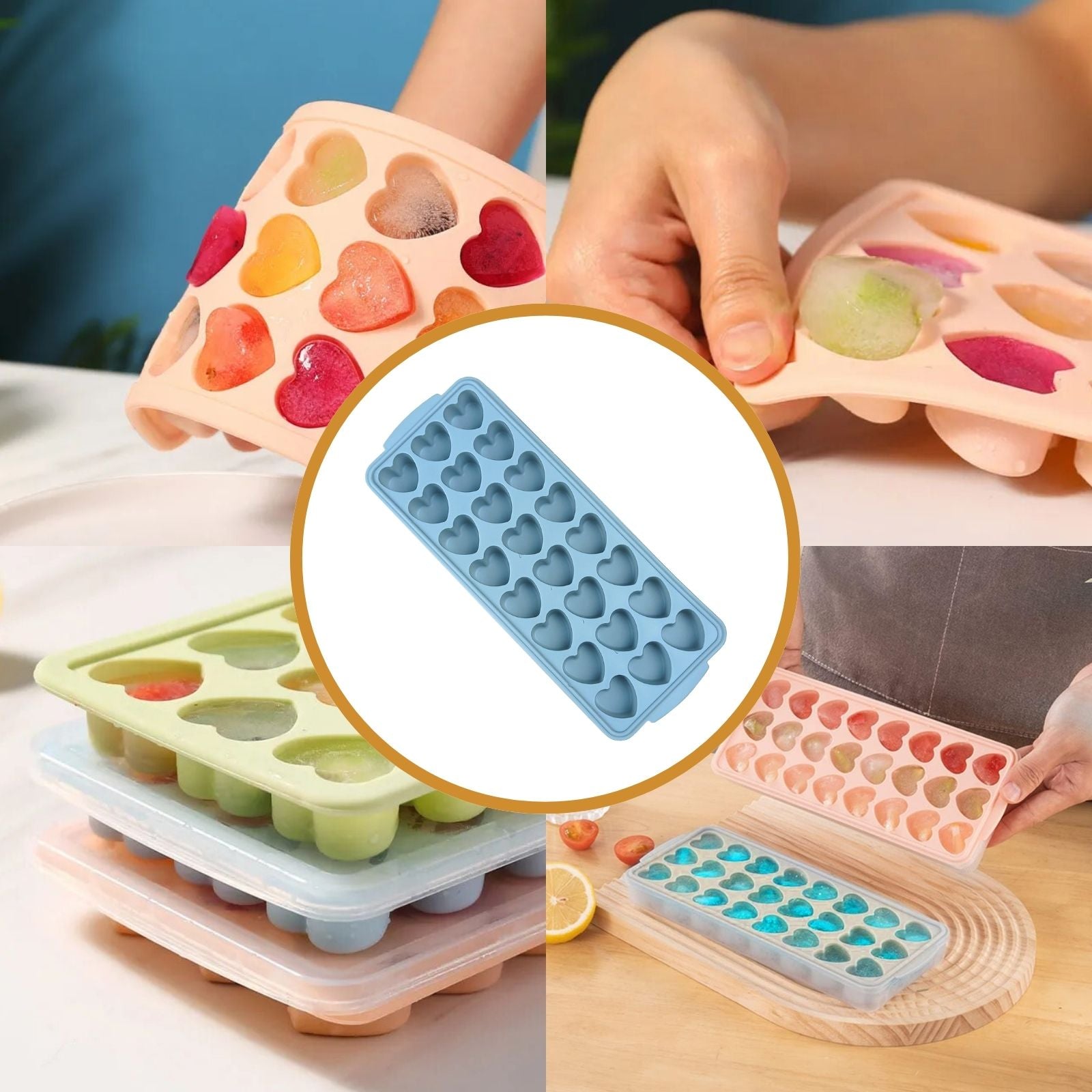 - Moldes de silicona en forma de corazón para cubitos de hielo.