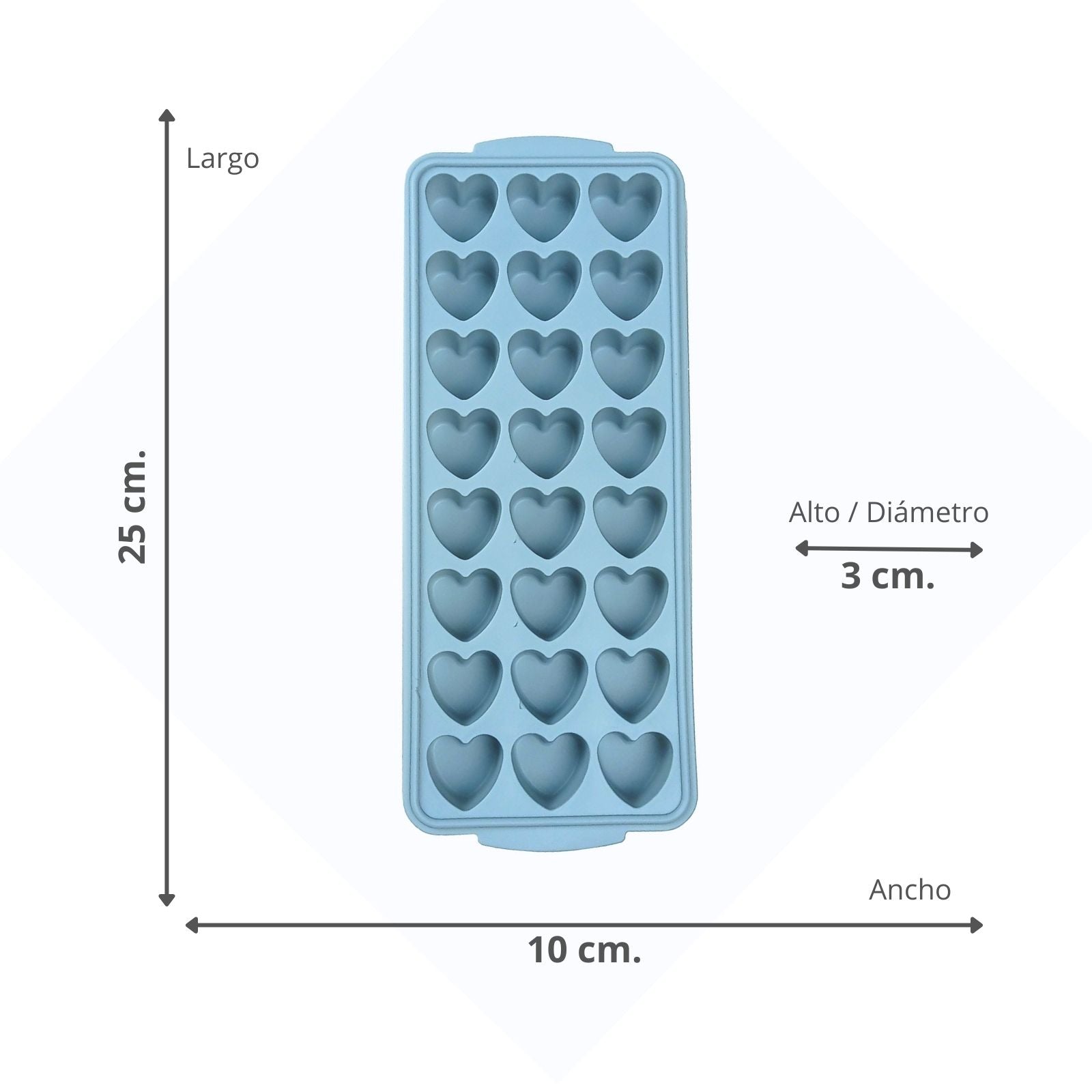 - 21 cubitos de hielo en forma de corazón por bandeja.
