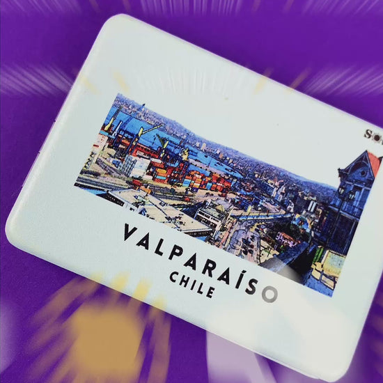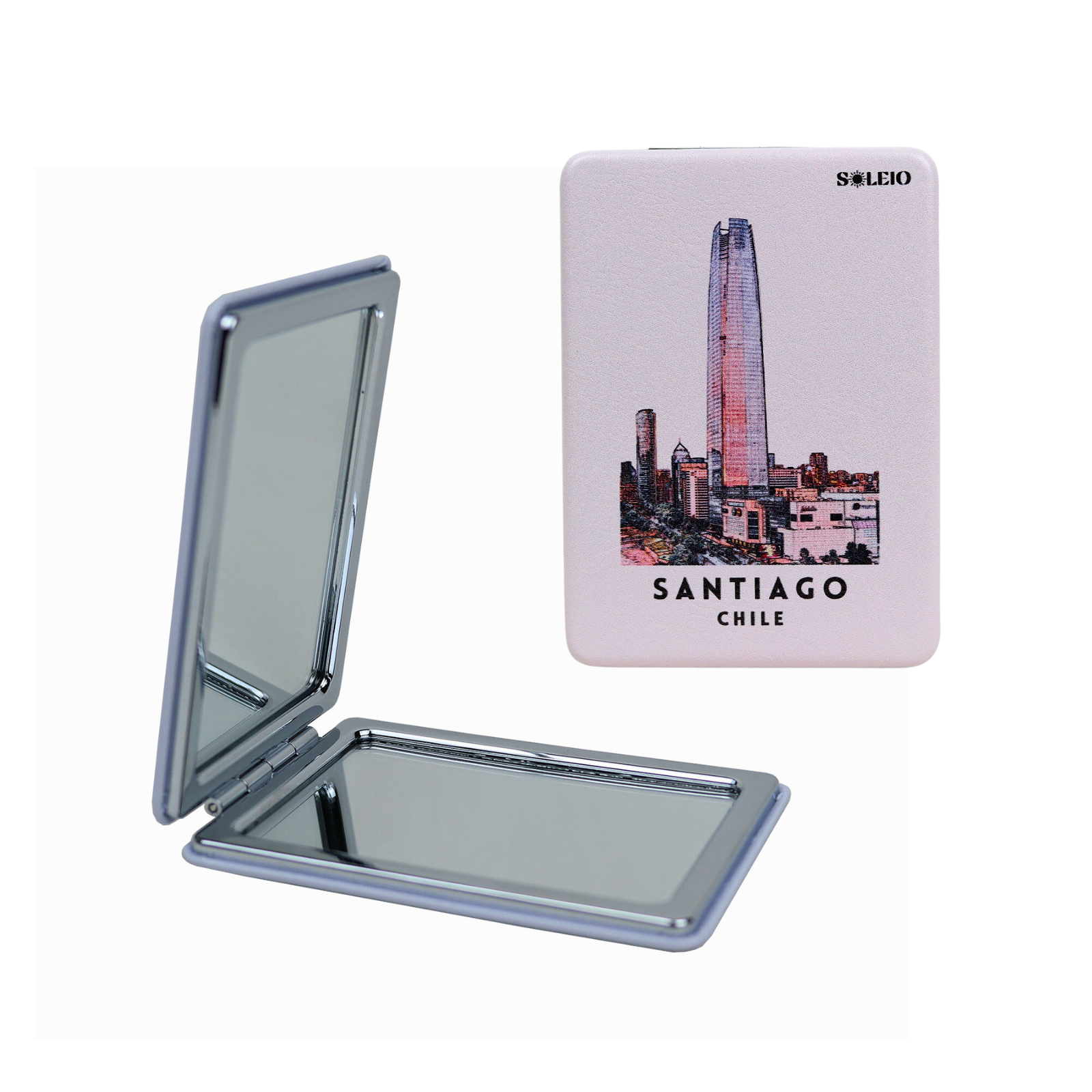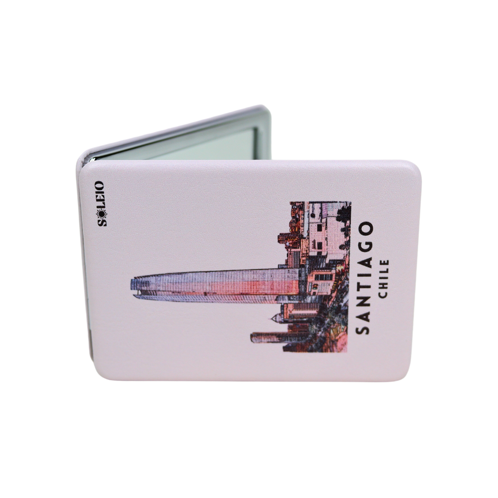 - Espejo de cartera con diseños de ciudades emblemáticas de Chile.