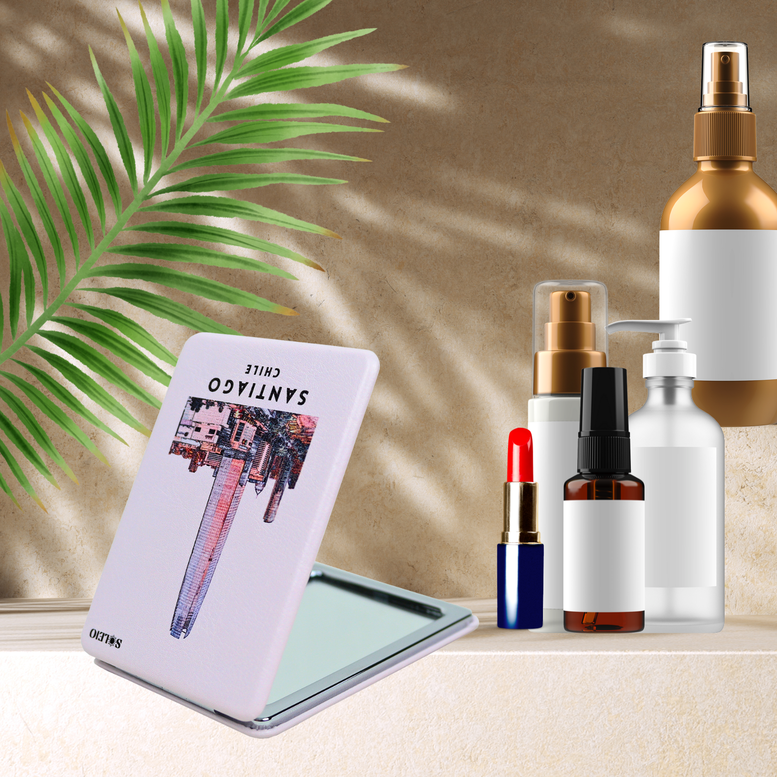 ¡Refleja tu belleza en cada rincón con nuestro espejo de cartera inspirado en los maravillosos paisajes de Chile! Práctico, plegable y con un diseño que captura la esencia de Valparaíso, Isla de Pascua, Santiago y Valle Nevado, este espejo es mucho más que un accesorio: es un recuerdo vibrante de tus viajes.