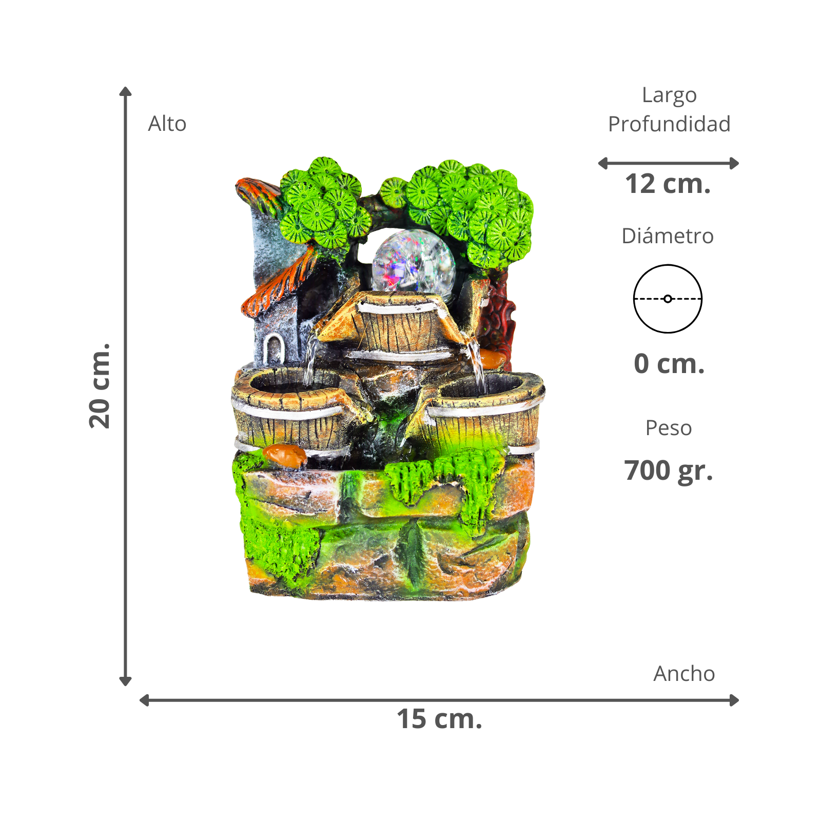 Embellece tus espacios y armoniza tu entorno con nuestra cautivadora Fuente de Agua Circulante. Ideal para embellecer jardines, salas de estar, rincones de meditación, oficinas o cualquier lugar que desees. Esta fuente presenta un diseño único con cascadas de agua que mueven una rueda giratoria y dan vida a una deslumbrante bola de cristal, iluminada con luces LED de colores. Experimenta una sensación divina de paz y serenidad con este efecto visualmente impactante.
