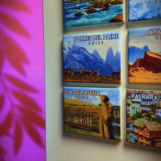 Un impresionante imán diseñado para embellecer tu refrigerador con cautivadoras representaciones de los paisajes de Chile. Este imán es un recordatorio tangible de tu viaje por Chile y un regalo perfecto para tus seres queridos. Cada vez que lo contemples, experimentarás la magia de nuestro país en todo su esplendor. Fabricado en cerámica y sublimado en vibrantes colores, este imán no solo te cautivará visualmente, sino que también te proporcionará una agradable sensación al recordar nuestros bellos paisajes. Ofrecemos diseños exclusivos inspirados en lugares emblemáticos de Chile. El regalo perfecto para turistas y seres queridos que desean llevar un pedacito de Chile consigo.