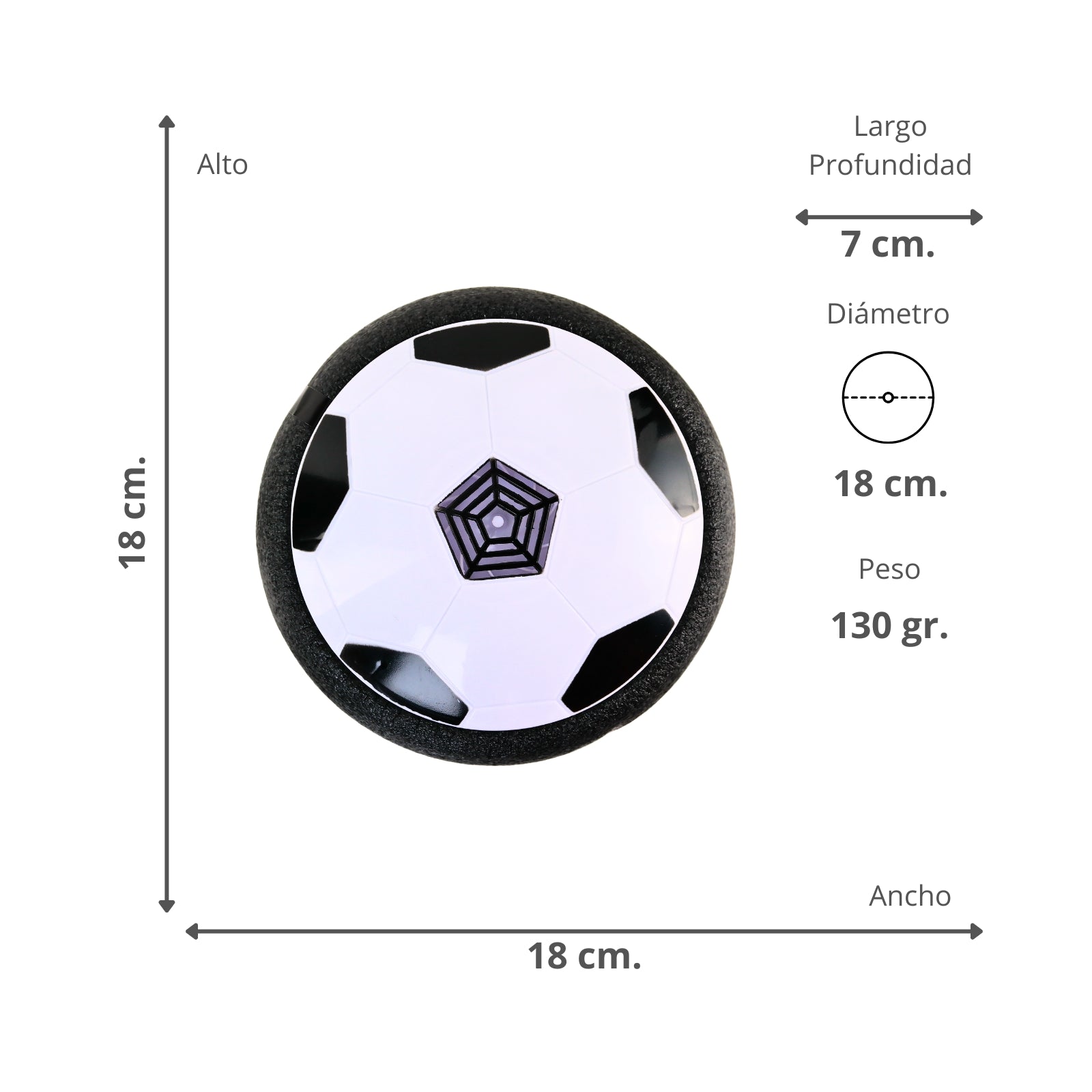 Este balón flotante es el juguete perfecto para que los niños jueguen fútbol dentro de casa sin riesgo de causar daños. Diseñado para mejorar sus habilidades y ofrecer horas de diversión, también es ideal para que los adultos se unan al juego. Funciona con tecnología aerodeslizante: solo necesitas encenderlo y su ventilador lo hará deslizarse suavemente sobre superficies lisas. Las luces LED lo hacen especialmente llamativo en la oscuridad, y su borde de goma protege los muebles. Perfecto para salas, livings o habitaciones, es ligero y seguro para niños de todas las edades. Requiere 3 pilas AA (no incluidas). Un regalo ideal para quienes buscan una actividad recreativa divertida en el hogar.