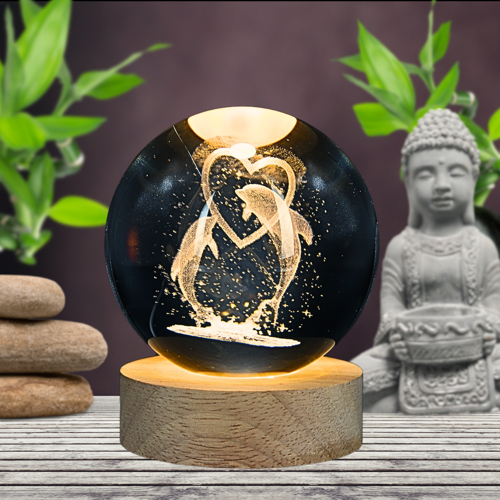 ¿Quieres agregar un toque verdaderamente hermoso, elegante y original a tu hogar o espacios? Conoce nuestra extraordinaria Lámpara Bola de Cristal con fascinantes diseños 3D en su interior. Esta pieza única, hecha de cristal con una base de madera encantadora, es la adición perfecta para tu mesa de noche, escritorio, velador o sala de estar.