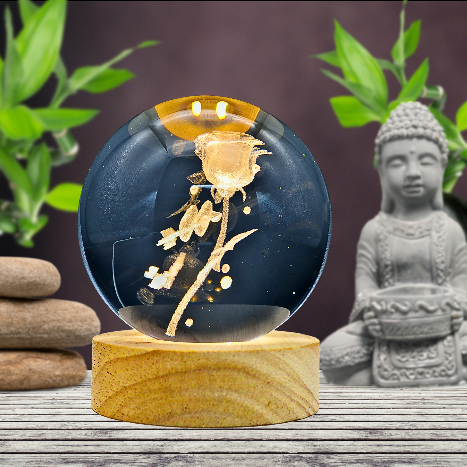 ¿Quieres agregar un toque verdaderamente hermoso, elegante y original a tu hogar o espacios? Conoce nuestra extraordinaria Lámpara Bola de Cristal con fascinantes diseños 3D en su interior. Esta pieza única, hecha de cristal con una base de madera encantadora, es la adición perfecta para tu mesa de noche, escritorio, velador o sala de estar.