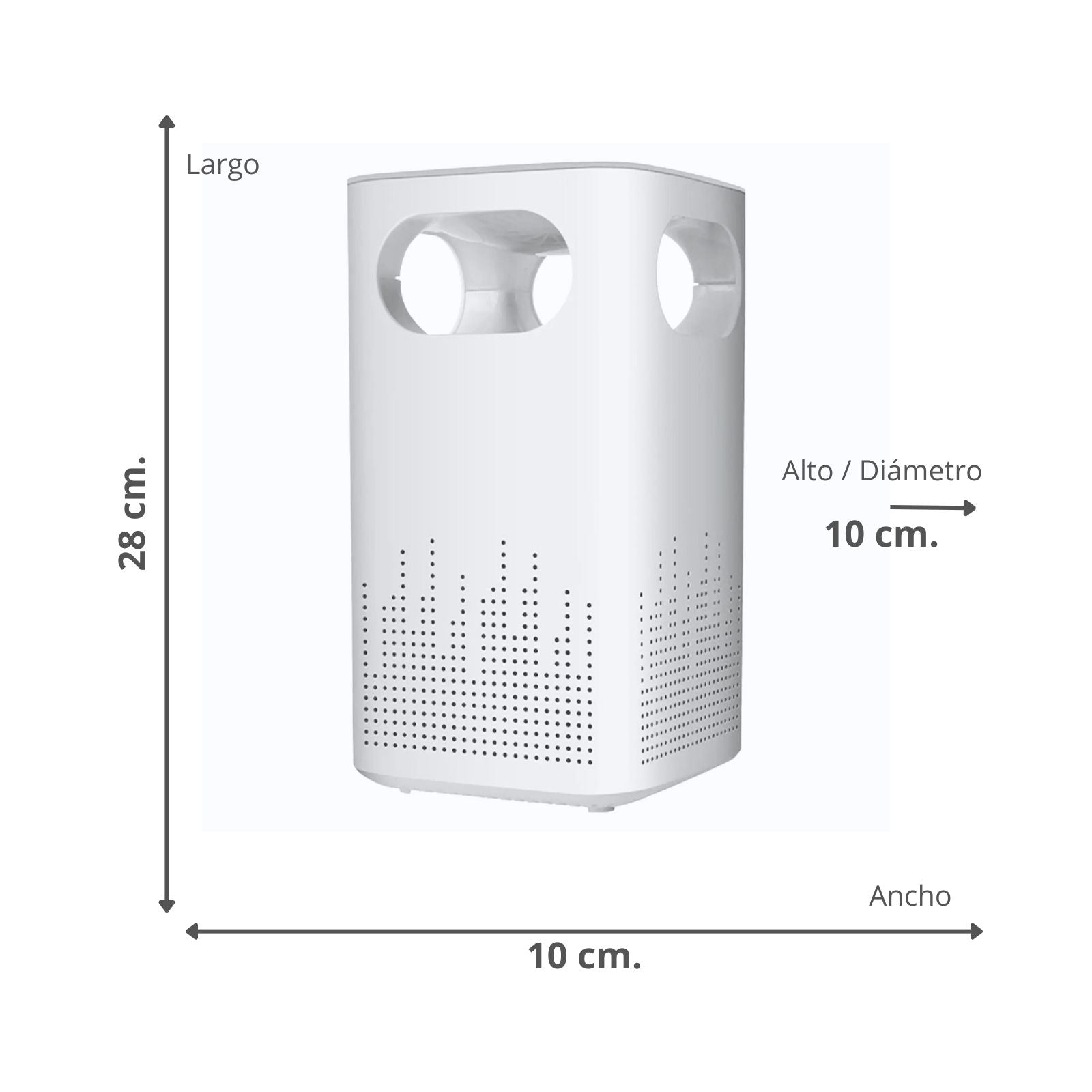 - Combina iluminación LED ultravioleta con un potente ventilador.