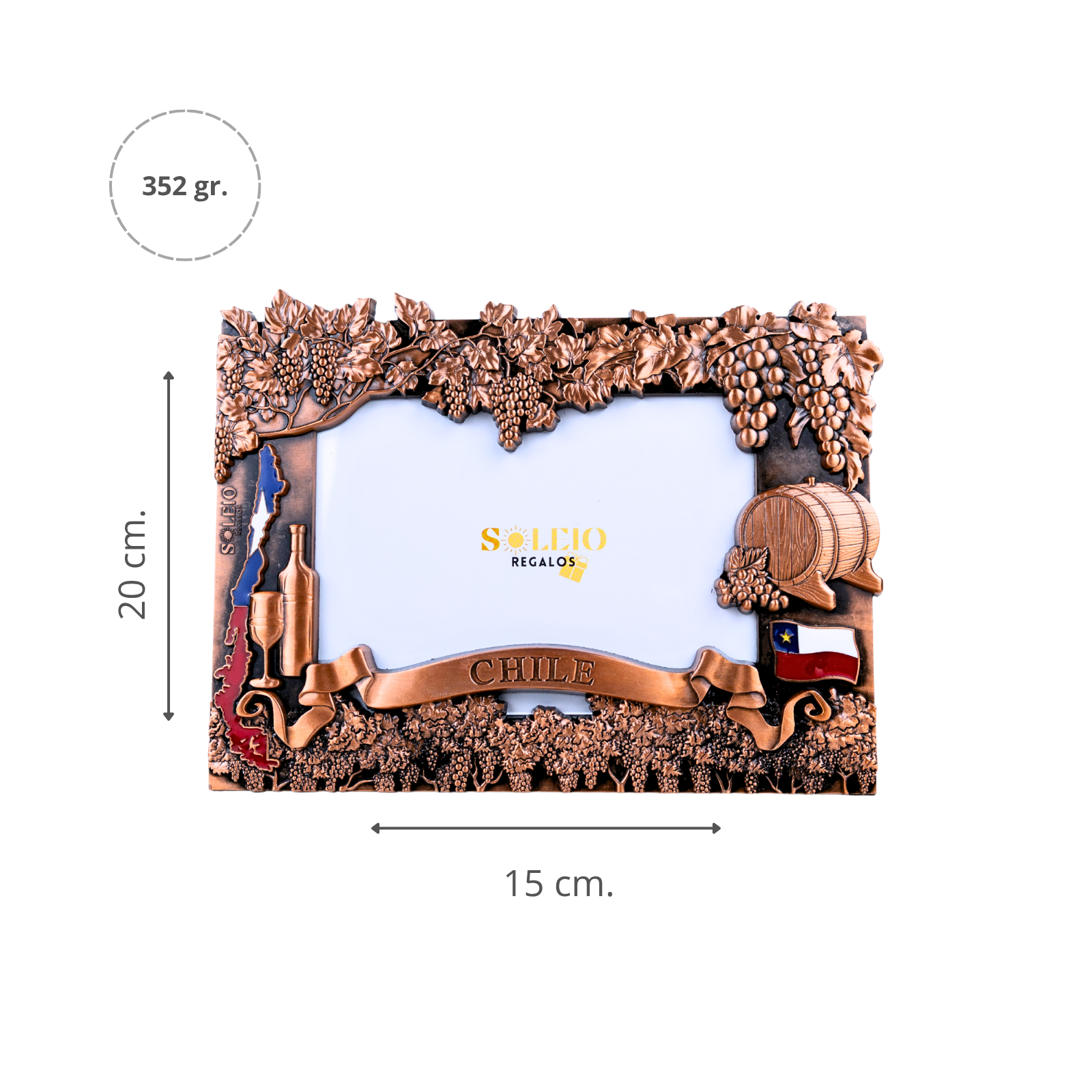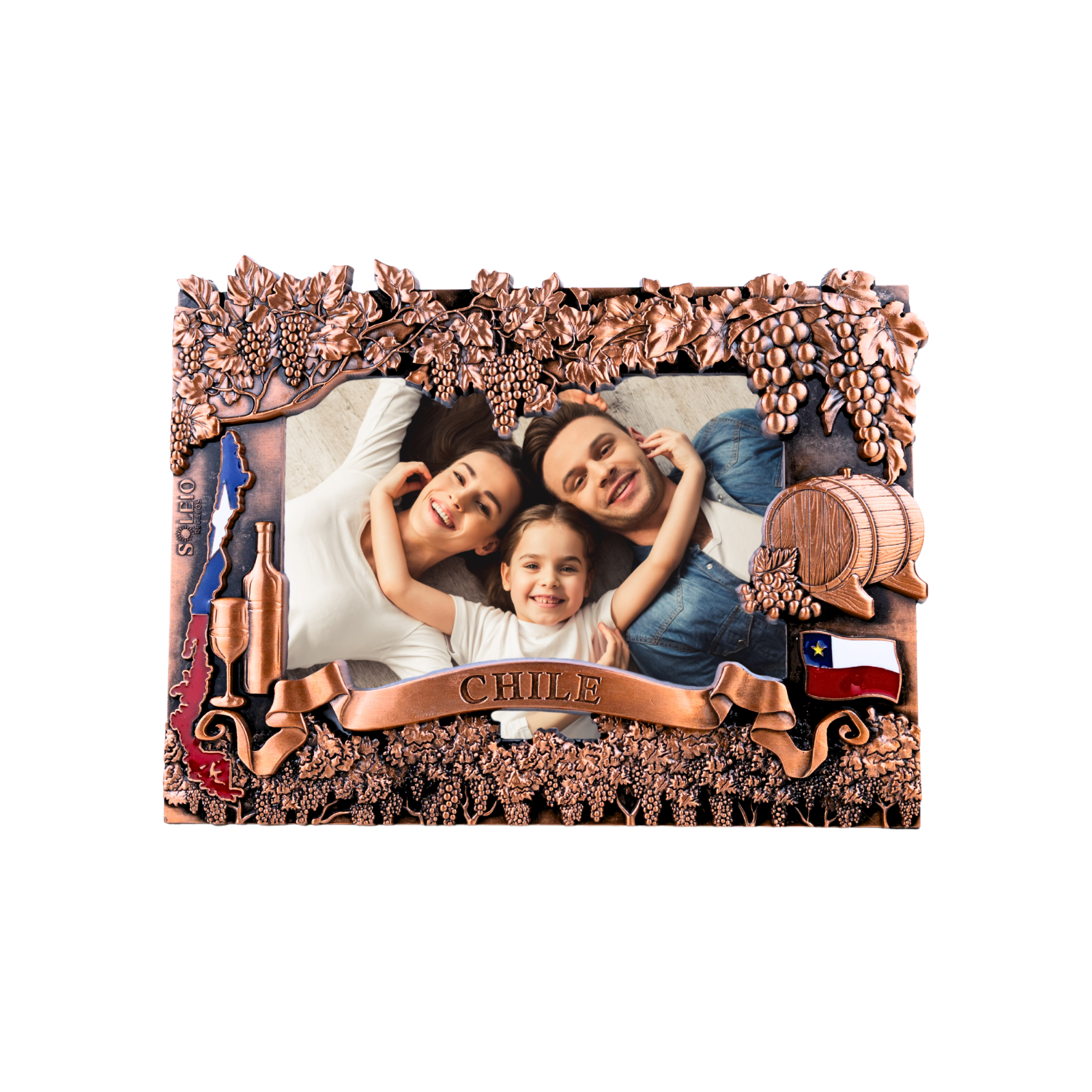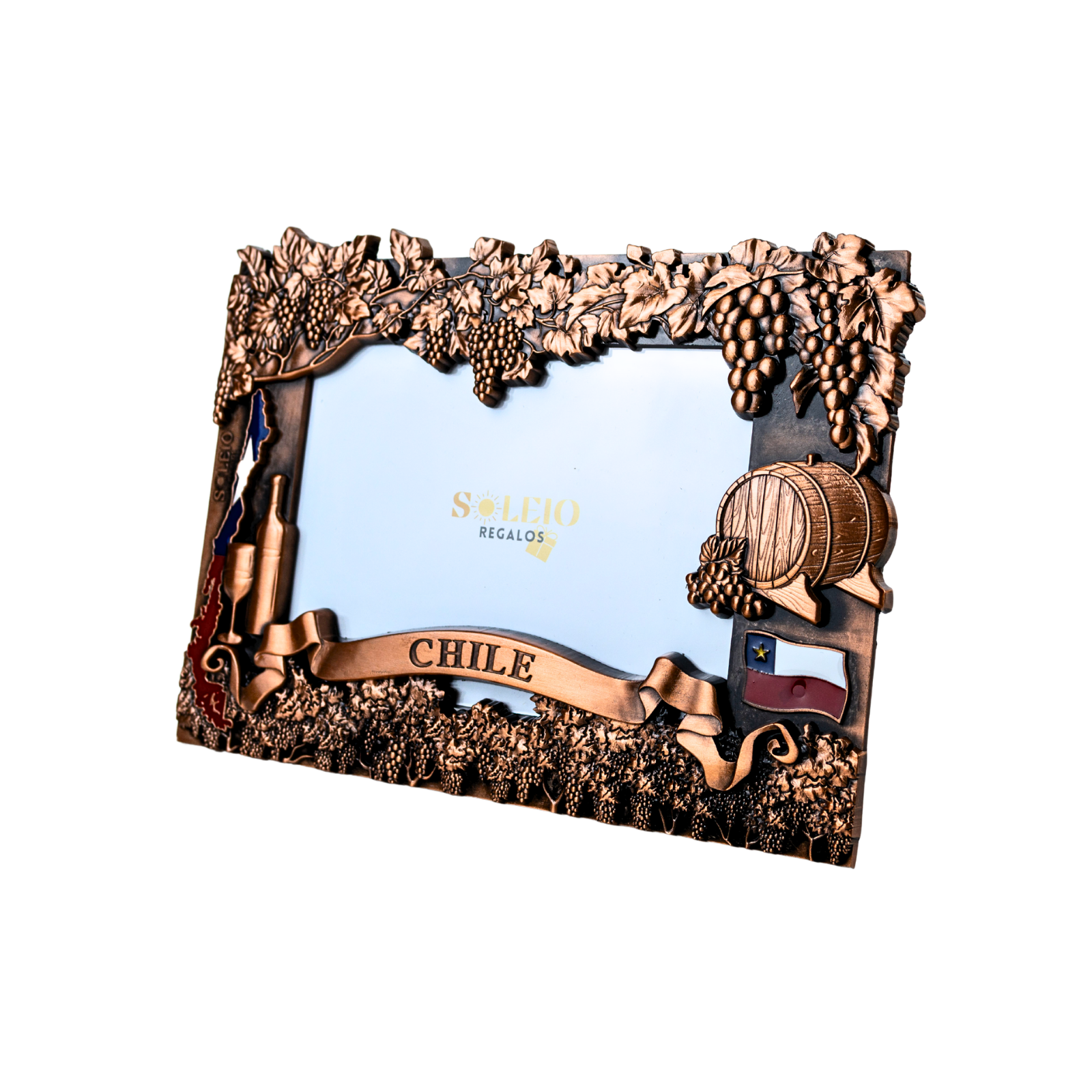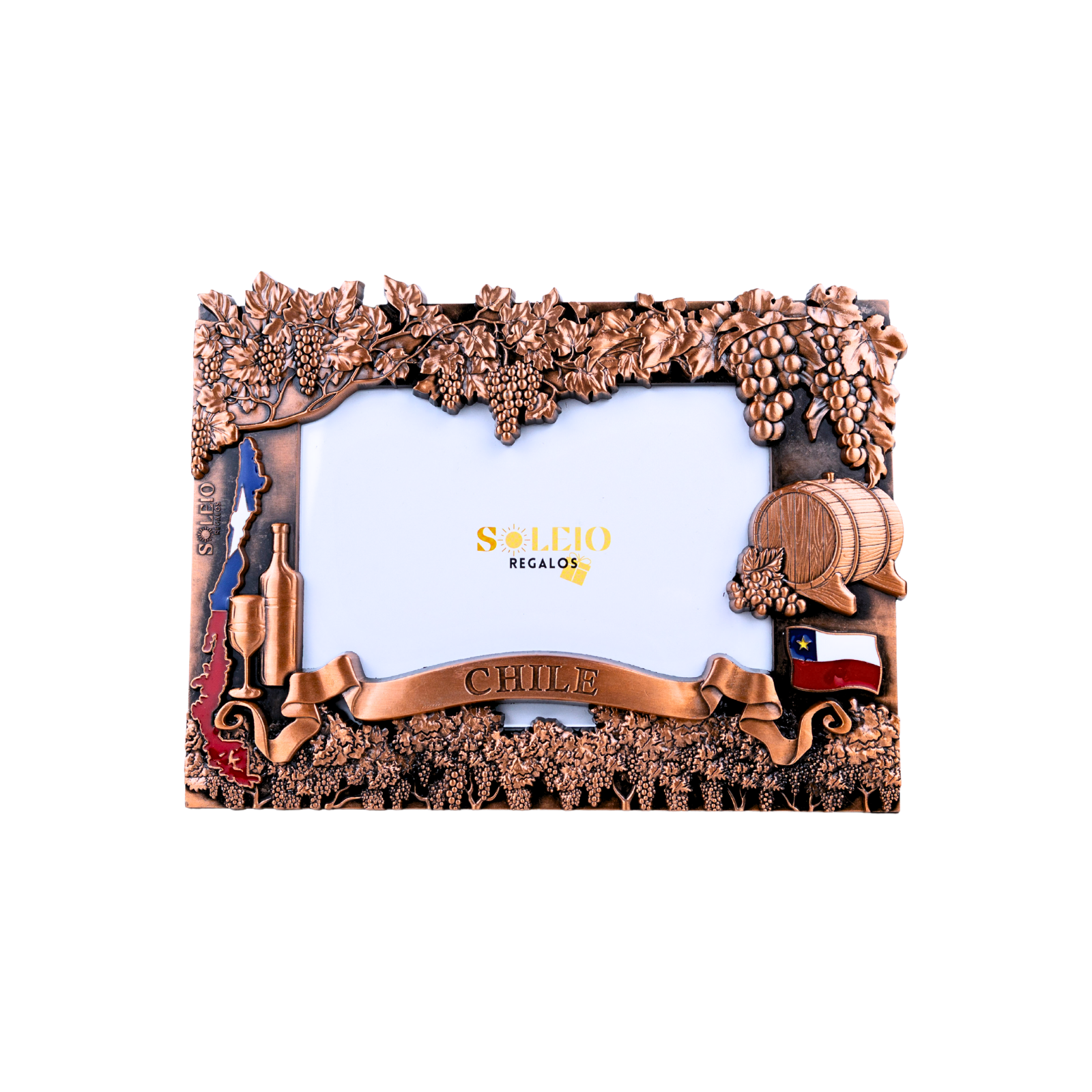 ¡Descubre la belleza de Santiago de Chile con nuestro marco portarretrato único! Este exclusivo diseño captura los lugares turísticos más emblemáticos de la ciudad De Santiago de Chile. Fabricado en metal y enriquecido con un hermoso tono de cobre, este marco resalta el recurso natural más representativo de nuestro país.