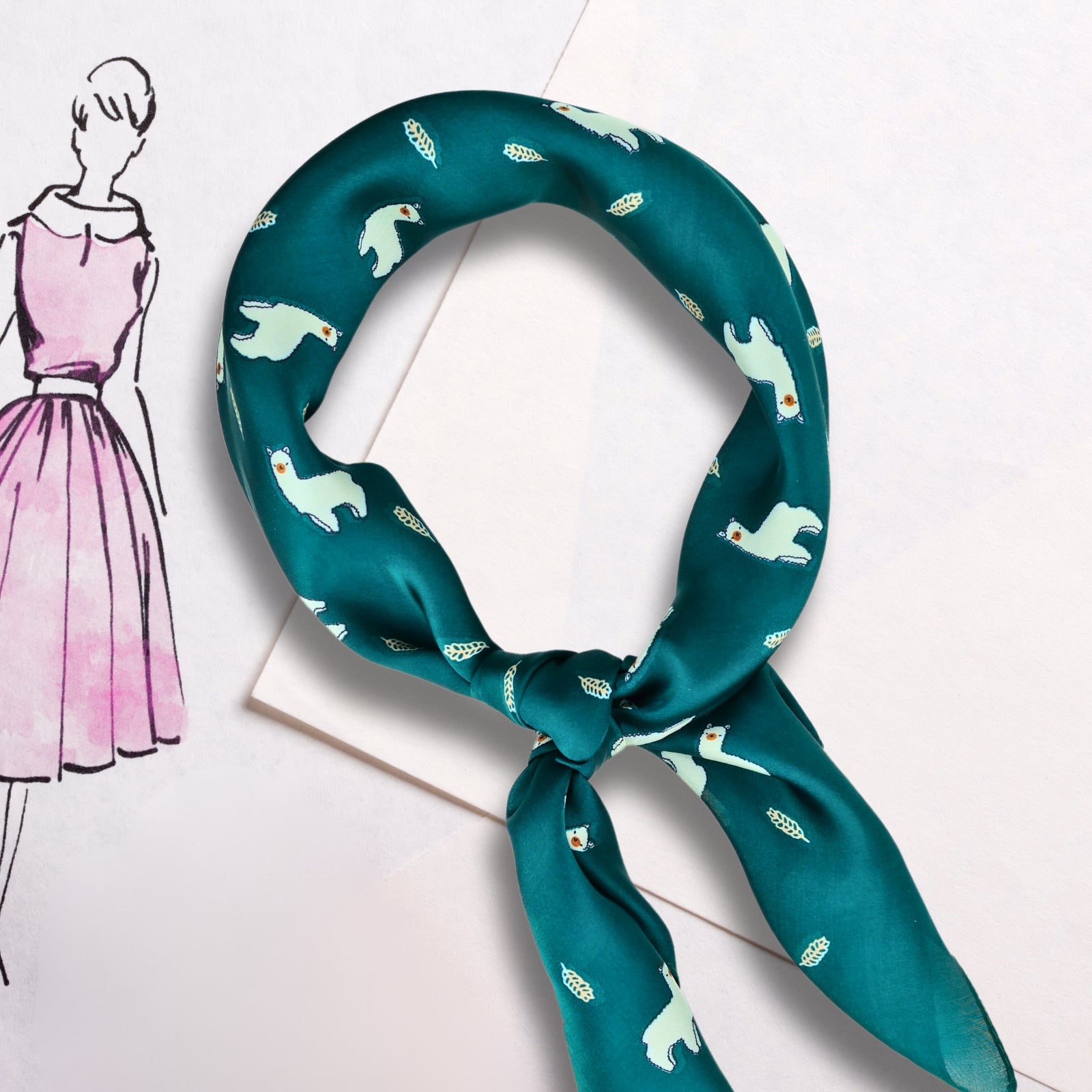 Pañuelo Liso Tipo Seda Unisex Diseño De Alpaca Verde