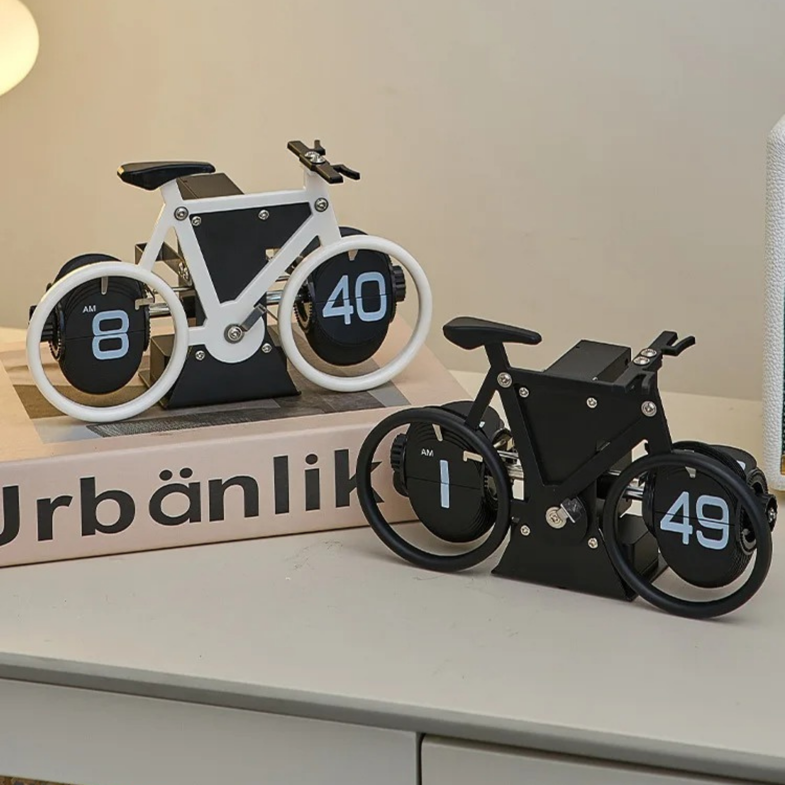 Reloj de Escritorio Mecánico Giratorio Bicicleta Beige