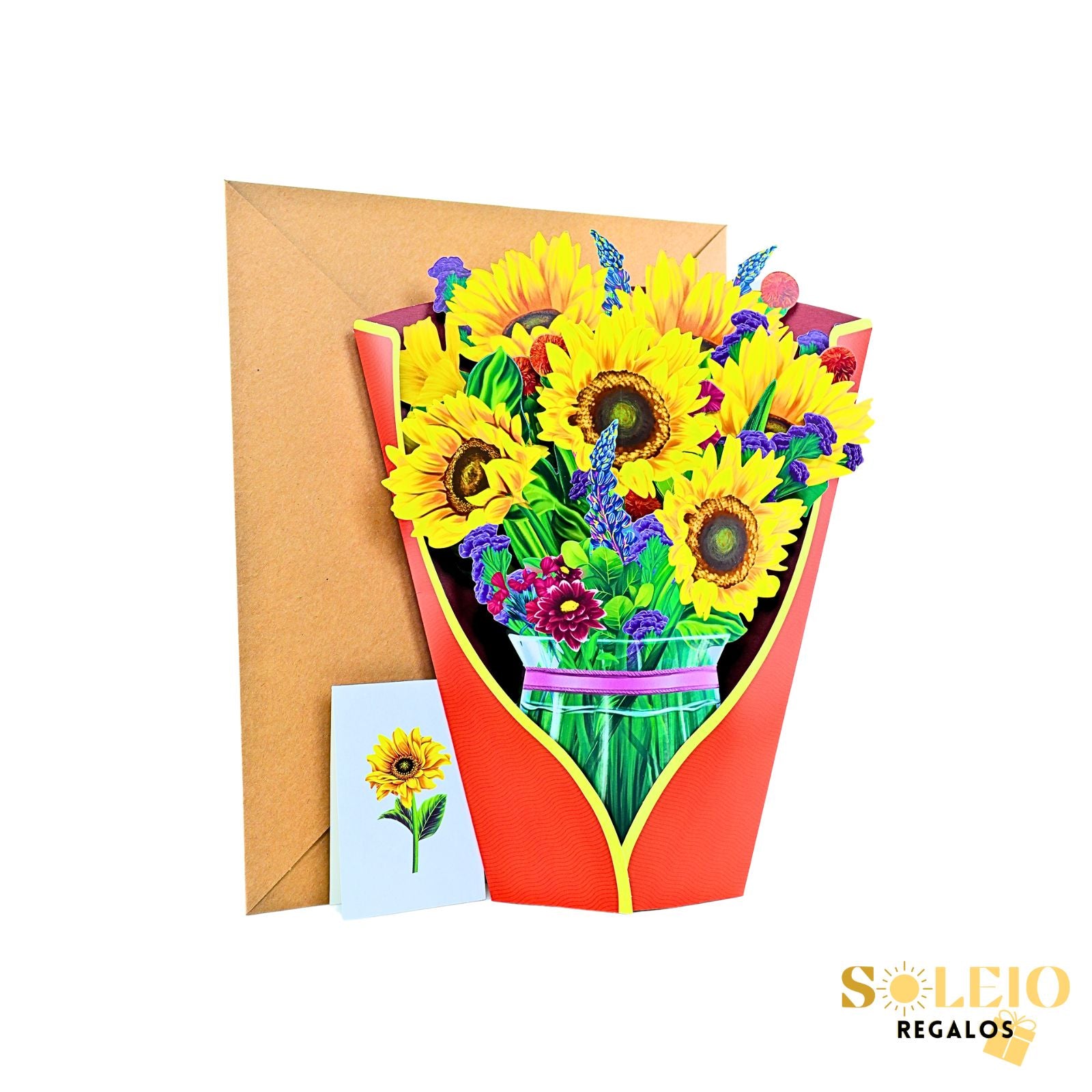 Tarjeta De Felicitaciones Bouquet De Flores 3D Girasol