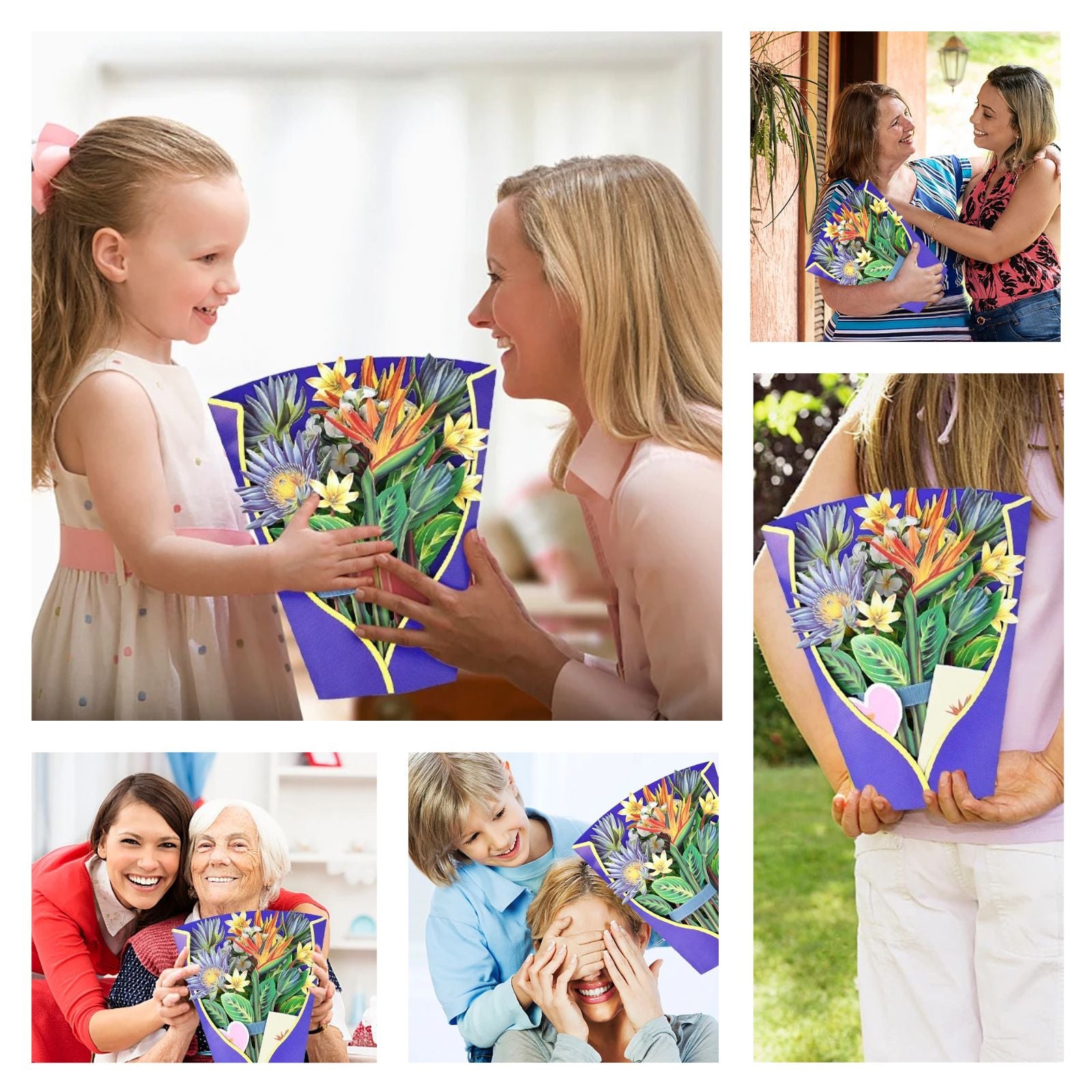 Sorprende con una tarjeta única y sofisticada. Este diseño en papel tallado se despliega para formar un elegante ramo de flores en 3D, ideal para celebrar a mamá en su día, expresar tu amor en San Valentín o rendir homenaje a una mujer especial. Su formato grande incluye un sobre a juego y una tarjeta adicional para escribir tus deseos o mensajes. Una vez abierta, se transforma en una delicada pieza decorativa que alegrará cualquier espacio. Más que una tarjeta, es un detalle inolvidable que combina emoción y diseño.