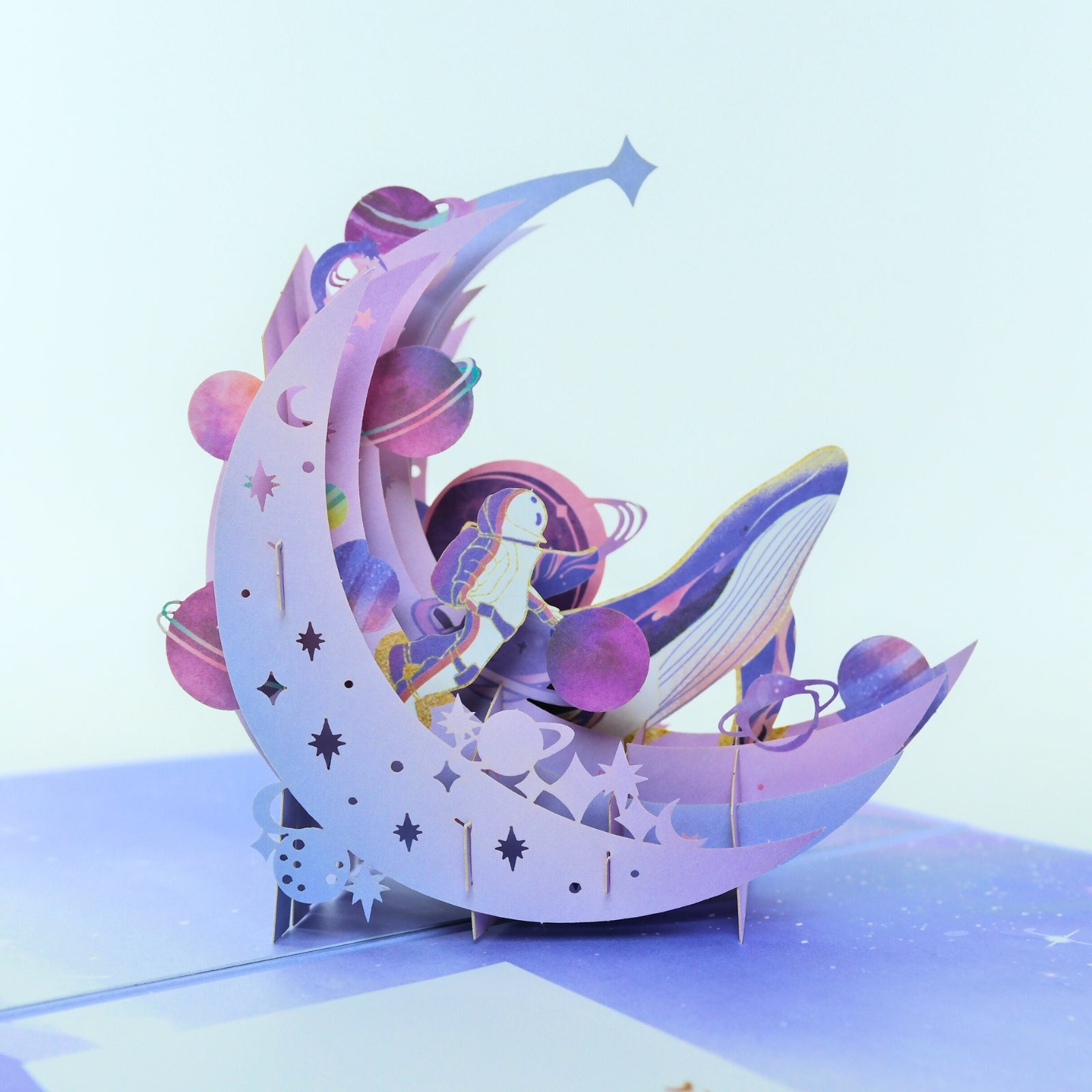 Diseño 3D sorprendente: de Astronauta en el universo que se despliega al abrir la tarjeta.