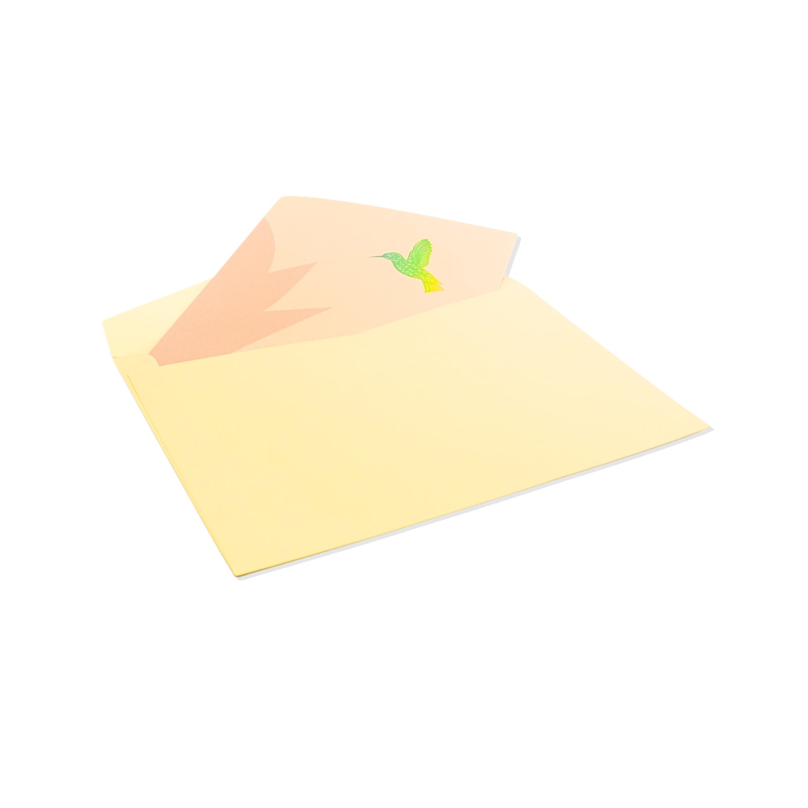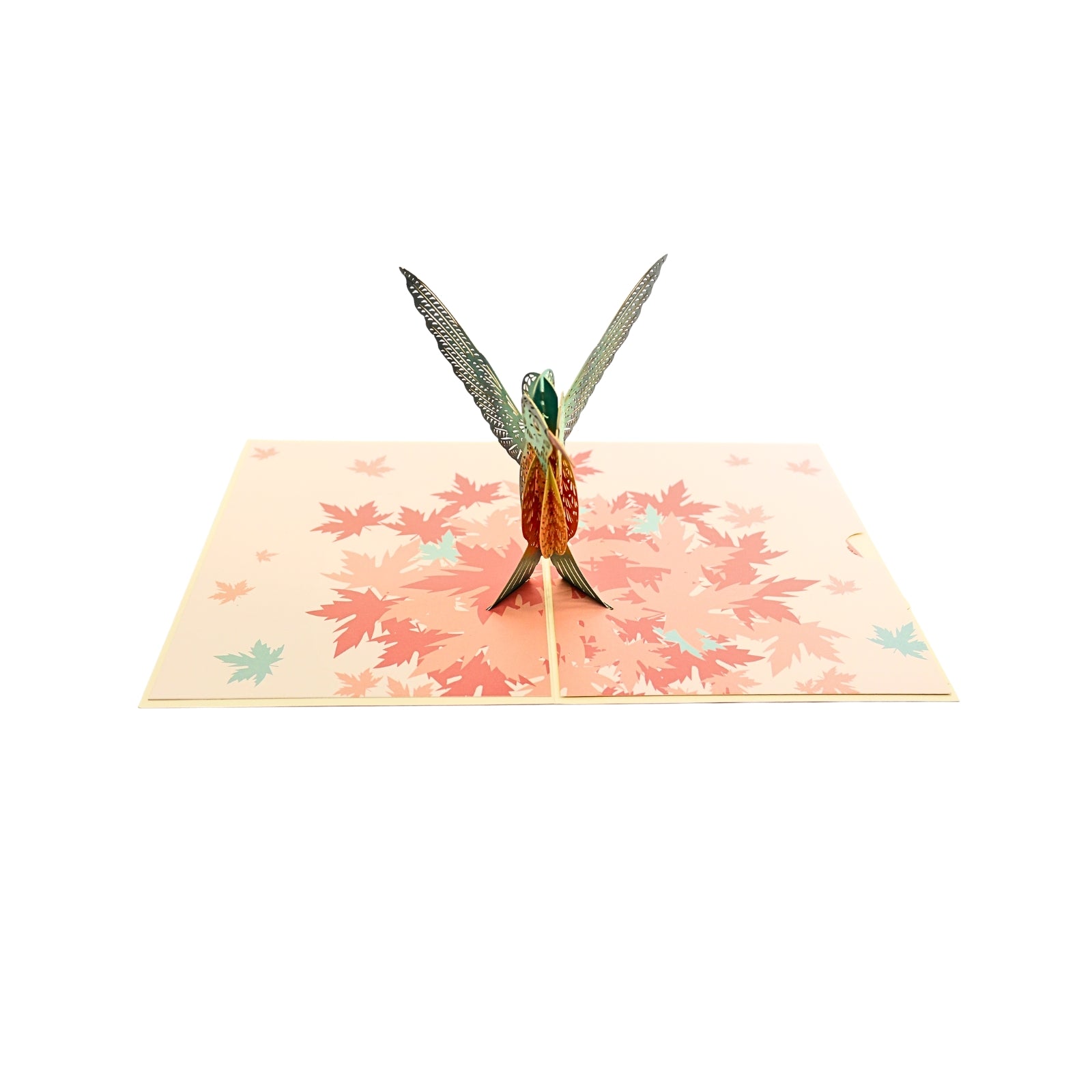 Diseño 3D sorprendente: de Colibrí que se despliega al abrir la tarjeta.