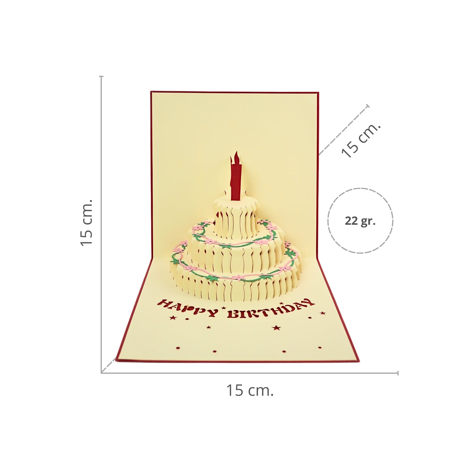Sorprende a tu ser querido con una tarjeta única y especial. Al abrirla, un hermoso pastel de cumpleaños se despliega en un increíble efecto 3D, creando un momento mágico e inolvidable.